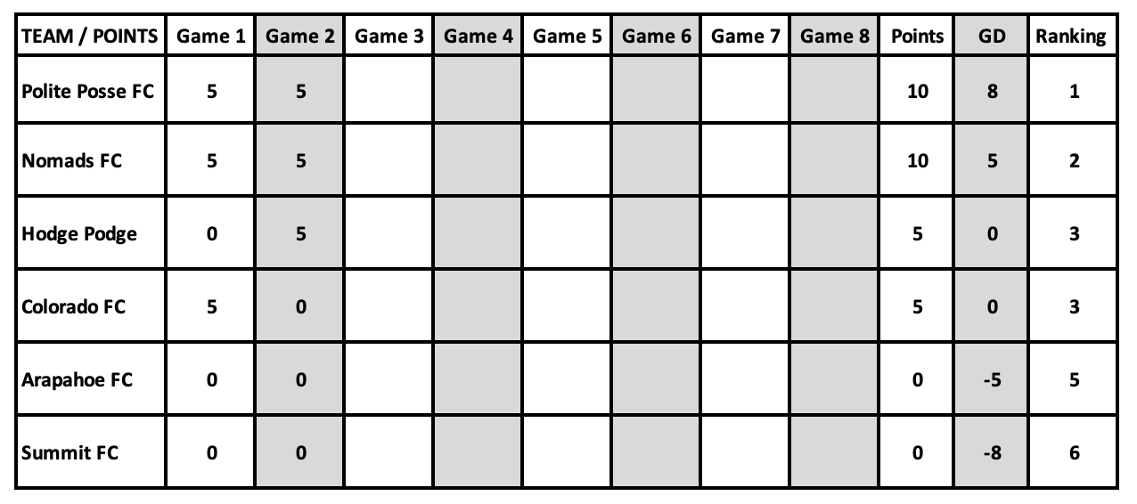 female and 8 male players. If no female players are present for a team, that match will be recorded as a forfeit against the team that did not have any female players present. A team will be allowed to play with 7 players as long as a minimum of 1 player is a female.
