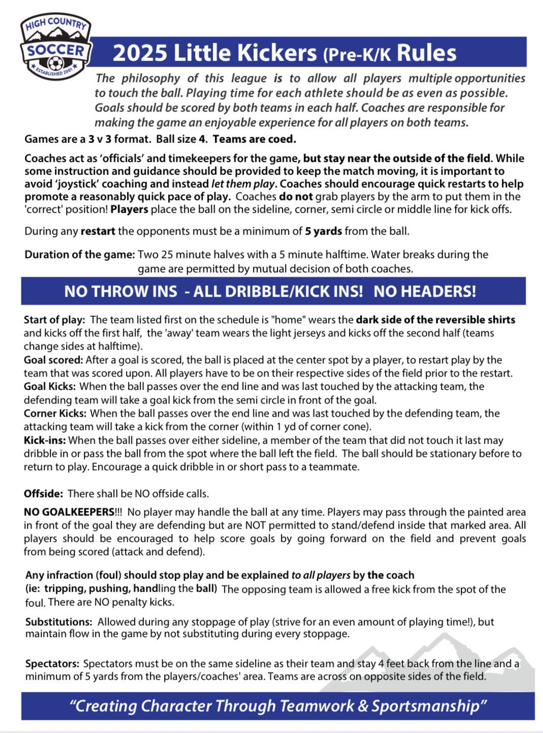 Por favor, invite a su hijo/a a participar en tantos entrenamientos como sea posible. Animamos a los padres a jugar al fútbol con sus hijos/as siempre que sea posible durante la semana.