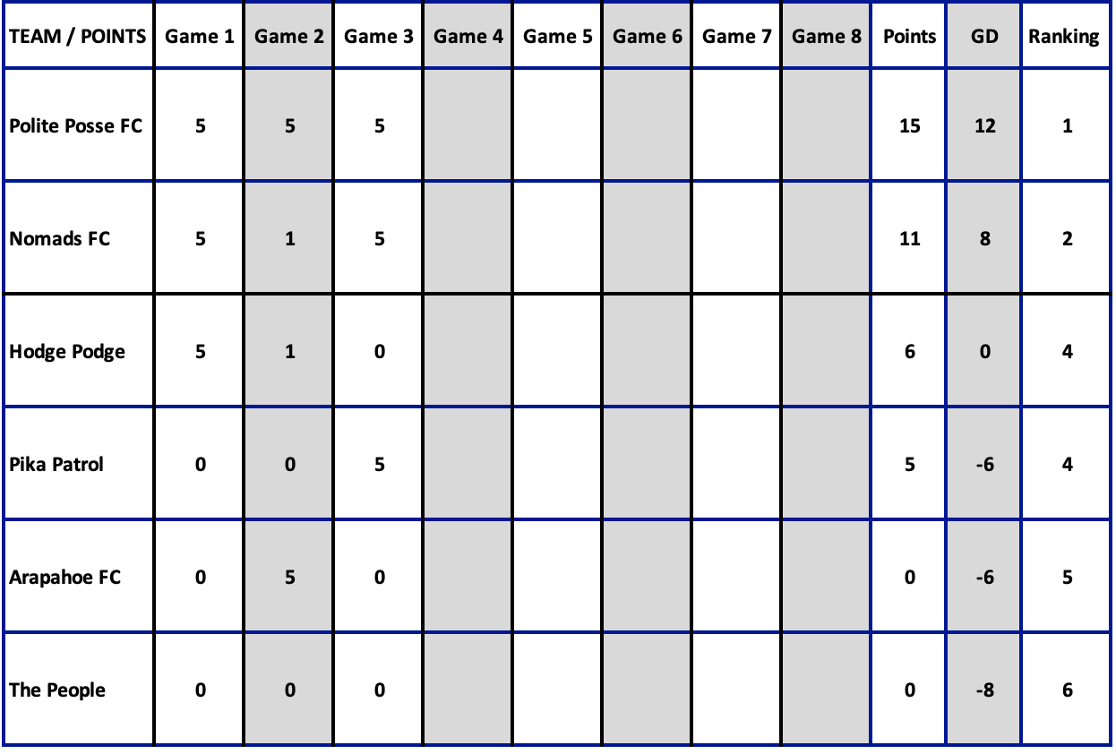 . 4v4 w/o goalkeepers. Rosters max is 12 players of which 8 may dress for each game. All players must register to be eligible to play. By